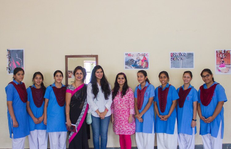 Portraits of traditional Rajasthani Village women were hanging on the walls with popping words that are basically predefined opinions about them. The girls were asked to jumble up these letters to form a positive quality or strength of rural women!